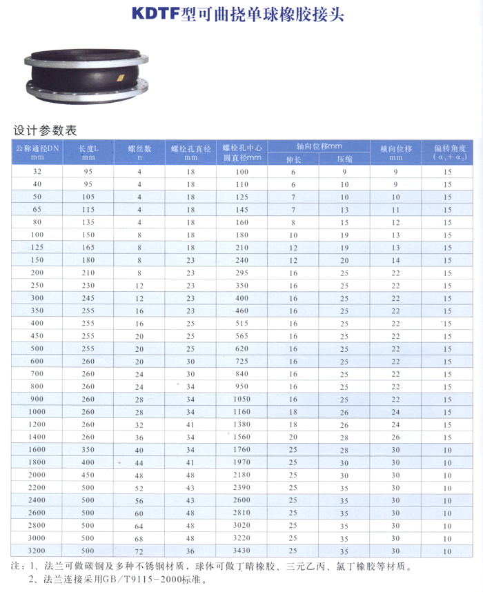 非金属补偿器系列-- KDTF型可曲挠单球橡胶接头