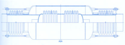 该膨胀节具有吸收内压推力的能力,且有良好的导向性,产品刚度小外形尺寸小等特点。