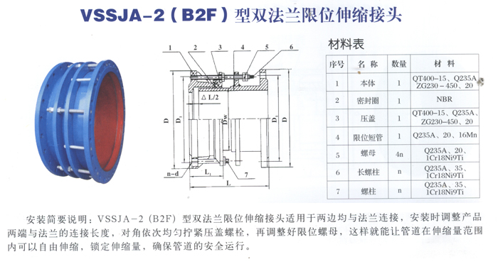 钢制管道伸缩器系列-- VSSJA-2(B2F)型双法兰限位伸缩接头
