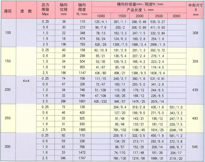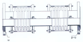 该膨胀节由两段波纹管,中间接管及带有限位螺母的小拉杆等零件组成,它在吸收横向位移的同时,还吸收轴向位移。